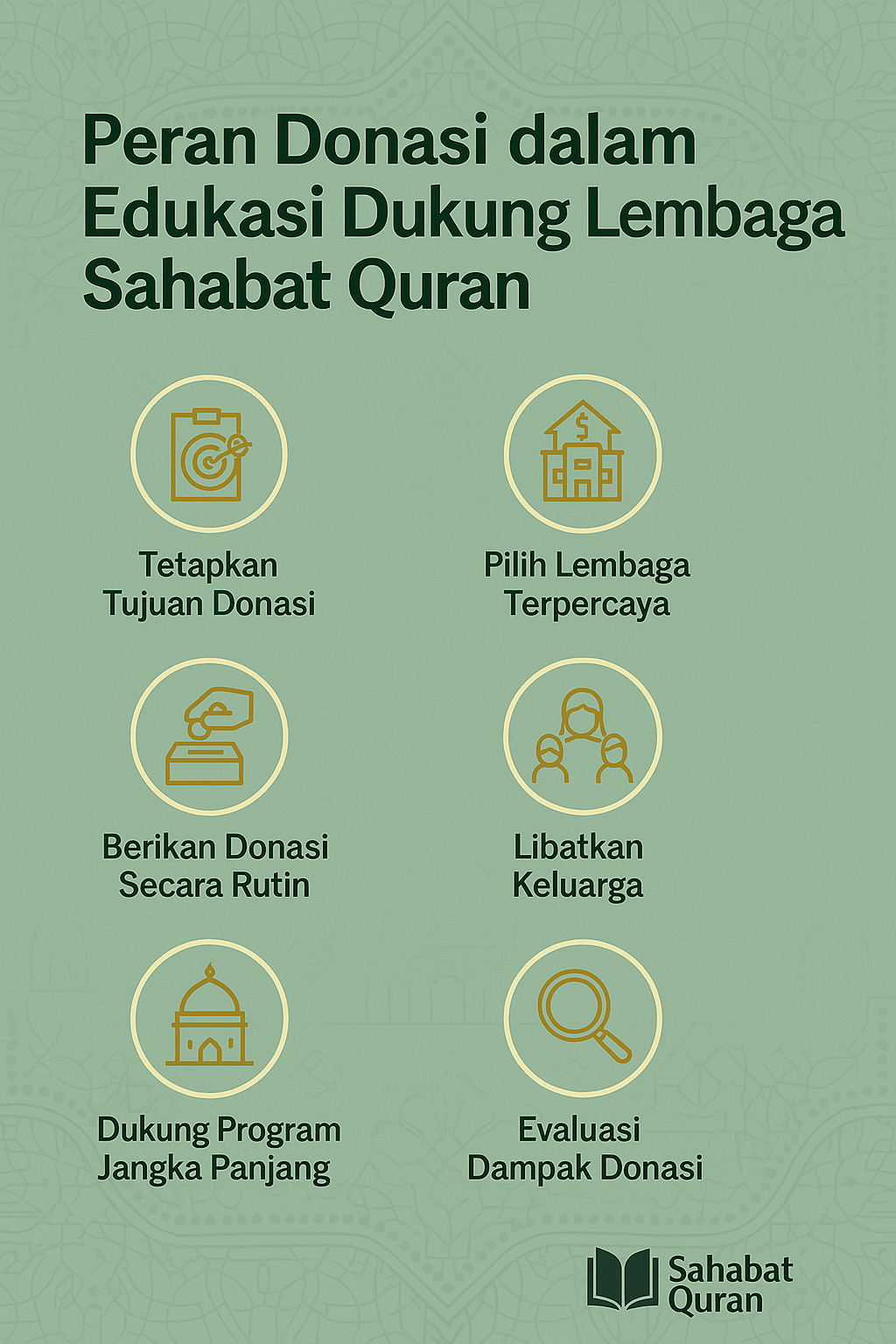Cara Efektif Mendonasikan Uang Anda Membuat Setiap Rupiah Bermakna Lebih Besar Berdonasi adalah salah satu bentuk kepedulian sosial dan ibadah yang berdampak besar, tidak hanya bagi penerima, tapi juga bagi pemberi. Namun, agar donasi Anda benar-benar bermanfaat dan tepat sasaran, perlu dilakukan dengan cara yang efektif dan penuh pertimbangan. Berikut adalah beberapa tips agar setiap rupiah yang Anda keluarkan menjadi amal yang maksimal: 1. Tentukan Tujuan Donasi Anda Sebelum berdonasi, pikirkan tujuan Anda: apakah untuk membantu pendidikan, kemanusiaan, dakwah, kesehatan, atau bencana alam? Mengetahui tujuan ini akan membantu Anda memilih lembaga atau program yang sesuai dengan nilai dan visi Anda. Contoh: Jika Anda ingin membantu anak-anak menghafal Al-Qur’an, Anda bisa memilih program beasiswa tahfidz dari lembaga seperti Sahabat Quran. 2. Pilih Lembaga yang Kredibel Pastikan Anda berdonasi melalui lembaga terpercaya yang memiliki track record baik, transparan, dan akuntabel. Lembaga yang baik akan memberikan laporan berkala dan bukti penggunaan dana yang jelas. Ciri-ciri lembaga kredibel: ✅ Terdaftar secara hukum ✅ Punya laporan kegiatan yang terbuka ✅ Aktif di lapangan dan mudah diakses ✅ Testimoni atau jejak digital positif 3. Donasi Berkala Lebih Baik Jika memungkinkan, cobalah berdonasi secara rutin. Donasi berkala, meski jumlahnya kecil, memiliki dampak yang lebih stabil bagi program-program sosial. Anda bisa mengatur autodebit bulanan agar lebih praktis. “Sedekah yang paling dicintai Allah adalah yang rutin, walaupun sedikit.” (HR. Bukhari dan Muslim) 4. Fokus pada Program Jangka Panjang Bantu program yang punya dampak jangka panjang seperti pendidikan, pemberdayaan ekonomi, atau pembangunan fasilitas umum. Program seperti ini menghasilkan perubahan yang berkelanjutan dan tidak hanya bersifat sesaat. 5. Libatkan Keluarga atau Lingkungan Ajak keluarga, sahabat, atau komunitas Anda untuk turut berdonasi. Tidak hanya memperluas manfaat, ini juga menumbuhkan budaya peduli dan gotong royong di lingkungan Anda. 6. Evaluasi dan Tinjau Kembali Sesekali, cek kembali donasi yang Anda lakukan. Apakah masih berjalan? Apakah program tersebut berkembang? Evaluasi ini penting agar Anda bisa terus berdonasi secara strategis dan efisien. Bonus: Niatkan karena Allah Dalam Islam, niat sangat penting. Pastikan niat Anda lurus, bukan untuk pamer atau mengharap pujian. Dengan begitu, sekecil apapun donasi Anda, akan memiliki pahala yang luar biasa di sisi-Nya.
